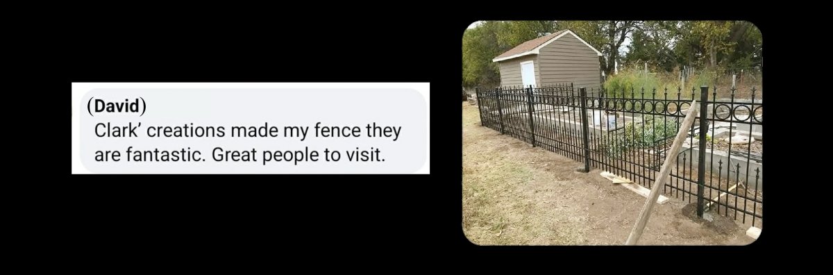 Welcome to Clark's Creations! This Family Business is one that focuses on Metal products. You will find items ranging from Ornamental Metal Fence Panels, Gates, Hand Rails and more. We are an American Company. We offer a service that has allowed us to build projects for people all over the USA. We stand behind our products and we work hard to offer one on one Customer Service. When you contact us, you speak directly to a Person and we work with you to make sure your project meets your needs. As a family of 5, we understand that your hard earned dollars should not be unwisely invested. So to assist in this principle, we offer a variety of metal products with price options that still maintain our standards of quality and beauty. Clark's Creations is a company you will be pleased to work with in your Ornamental Wrought Iron needs.