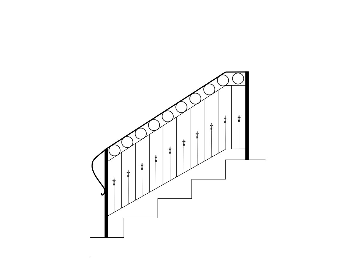 To Measure your Stair steps for starting your Handrail Project, download this pdf file and choose the sheet that fits your number of steps. If you have more than 7 steps, please contact us for the appropriate file.